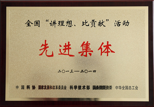 公司榮獲2013-2014年度全國“講理想、比貢獻(xiàn)”活動(dòng)先進(jìn)集體稱號