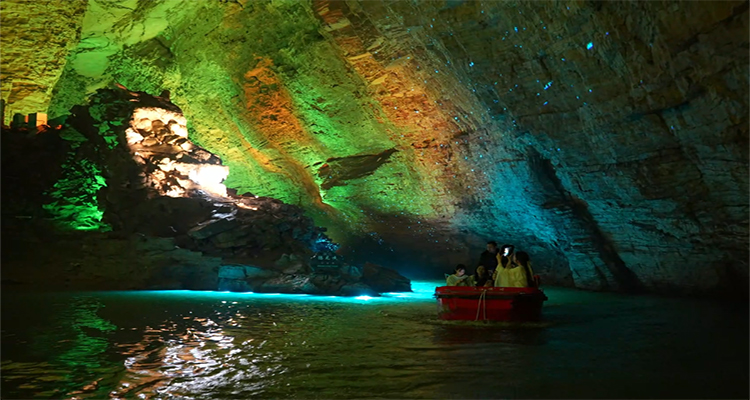 地理位置:張家界市武陵源區(qū)索溪峪鎮(zhèn)推薦理由:洞內(nèi)恒溫16-18℃,一入洞門(mén),寒氣撲面。洞內(nèi)有鐘乳石在光影中若隱若現(xiàn),仿佛踏入神秘龍宮,還可以乘船游覽暗河——響水河,欣賞洞內(nèi)的奇特景觀。
