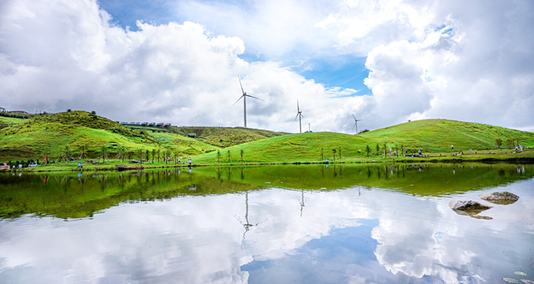 1、仰天湖:作為景區(qū)核心,它是第四紀冰川期形成的火山口湖泊,面積達 20 余畝。湖水澄澈,倒映著周邊連綿的風車和廣袤的草原,宛如一面巨大的鏡子鑲嵌在高山之上。清晨時分,常有云霧繚繞,如夢似幻,仿佛人間仙境。湖邊是絕佳的野餐地點,鋪上餐布,享受美食的同時,還能將湖光山色盡收眼底。