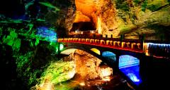 黃龍洞是張家界武陵源風景名勝中著名的溶洞景點,因享有“世界溶洞奇觀”“世界溶洞全能冠軍”“中國最美旅游溶洞”等頂級榮譽而名震全球。現(xiàn)已探明洞底總面積10萬平方米;洞體共分四層,洞中有洞、洞中有山、山中有洞、洞中有河。經(jīng)中外地質(zhì)專家考察認為:黃龍洞規(guī)模之大、內(nèi)容之全、景色之美,包含了溶洞學的所有內(nèi)容。黃龍洞以其龐大的立體結(jié)構(gòu)洞穴空間、豐富的溶洞景觀、水陸兼?zhèn)涞挠斡[觀光線路獨步天下。