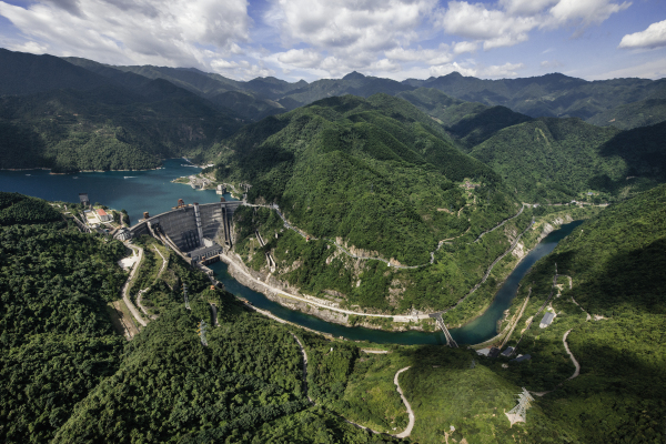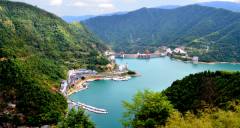 一壩鎖東江,高峽出平湖。東江大壩是我國自行設計建造的第一座雙曲薄殼型拱壩,壩高157米,壩型美觀、結構新穎、氣勢雄偉,在當時同類型壩中世界排名第二,亞洲排名第一。