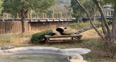 靈長類動物館占地2214平方米,飼養(yǎng)了狒狒、白眉長臂猿、白頰長臂猿、食蟹猴、綠猴、黑白猶猴等靈長類動物。場地依山就勢,展覽廳寬敞,通風(fēng)良好,有室外活動場。每個場館鄰活動一側(cè)均布置成石山景觀,與整個外部運(yùn)動場自然景觀環(huán)境較好的融為了一體。場館的外部裝飾上采用了原生態(tài)的樹干和卵石作為立面裝飾材料。游客與猴群之間被壕溝水面隔離,確保了游客與猴群雙方的安全。