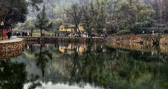 滴水洞在毛澤東故居以西約4公里處,是一個三面環(huán)山,一面以一小山澗作為出口的狹窄谷地,長約兩三公里,寬約05公里。由于谷深青幽,猶似一洞,山上一泉水從巖石滴下,故稱“滴水洞”,俗稱“吊水洞”。這里竹木繁茂,山澗流水潺潺,四季鳥語花香。特別是盛夏,這里氣溫比谷外低了3—5℃,是避暑療養(yǎng)的好處所。這里原為毛澤東祖父的居住地,山洞西北的一個山嘴,傳說過去常有老虎在此歇息,故曰“虎歇坪”,現(xiàn)有兩只臥虎石雕。