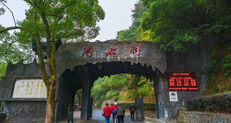 滴水洞長約2.8公里,洞內(nèi)有小溪,曲曲彎彎,幽壑口朝東北而開。小溪沿岸林木繁茂,挺拔的松林中夾雜著茂密的楠竹,而上百種野花漫山遍野地生長著。這里的珍貴林木有銀杏、女貞、鐵樹等30多種,這里的花卉有映山紅、臘梅、芙蓉、月季、菊花等上百種,這里的珍貴藥材有金銀花、甘草、沉香、白果等20余種,境幽景優(yōu)是滴水洞幽壑的一大特點,人在景中如置身仙境。滴水洞正式對外開放,并陸續(xù)修造了許多旅游景點與設(shè)施。滴水洞門樓,依山造勢,頂部垂著深灰色的石鐘乳,中覆著紫藤、絡(luò)石、烏蘿,古趣盎然,上題“滴水洞天”4個朱紅大字。門樓建在水濱崖邊,韶山水庫波光粼粼,巖邊松柏勁拔,給游人以先聲奪人之感;加上守衛(wèi)者仍保留全副武裝,仿佛毛澤東仍在洞中安歇。進得門樓,臨水一亭翼然,倚欄俯仰,只見山風(fēng)拂面;又見游道右側(cè)山巖石壁上,倏然從松樹間躍出靈氣飛動的“滴水洞”3字,正是毛澤東的手跡。道邊的黑色山體上,嵌著一塊塊名人留言的青石碑。漫步滴水洞游道,仿如置身詩情畫意中,松與竹,青蔥得癢人心肺,山花、野鳥、人面、歌聲,使人陶醉。
