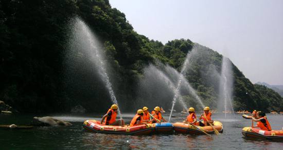 龍王峽漂流是落差大的自助峽谷漂流,河道長3.8公里,落差172米。河道經(jīng)過專家精心設(shè)計(jì)、科學(xué)施工,為勇者度身打造。出口陡懸,河床幽曲,沿河兩岸青山高聳、綠樹蔽日、危崖刺天、峭壁如削、神秘莫測。